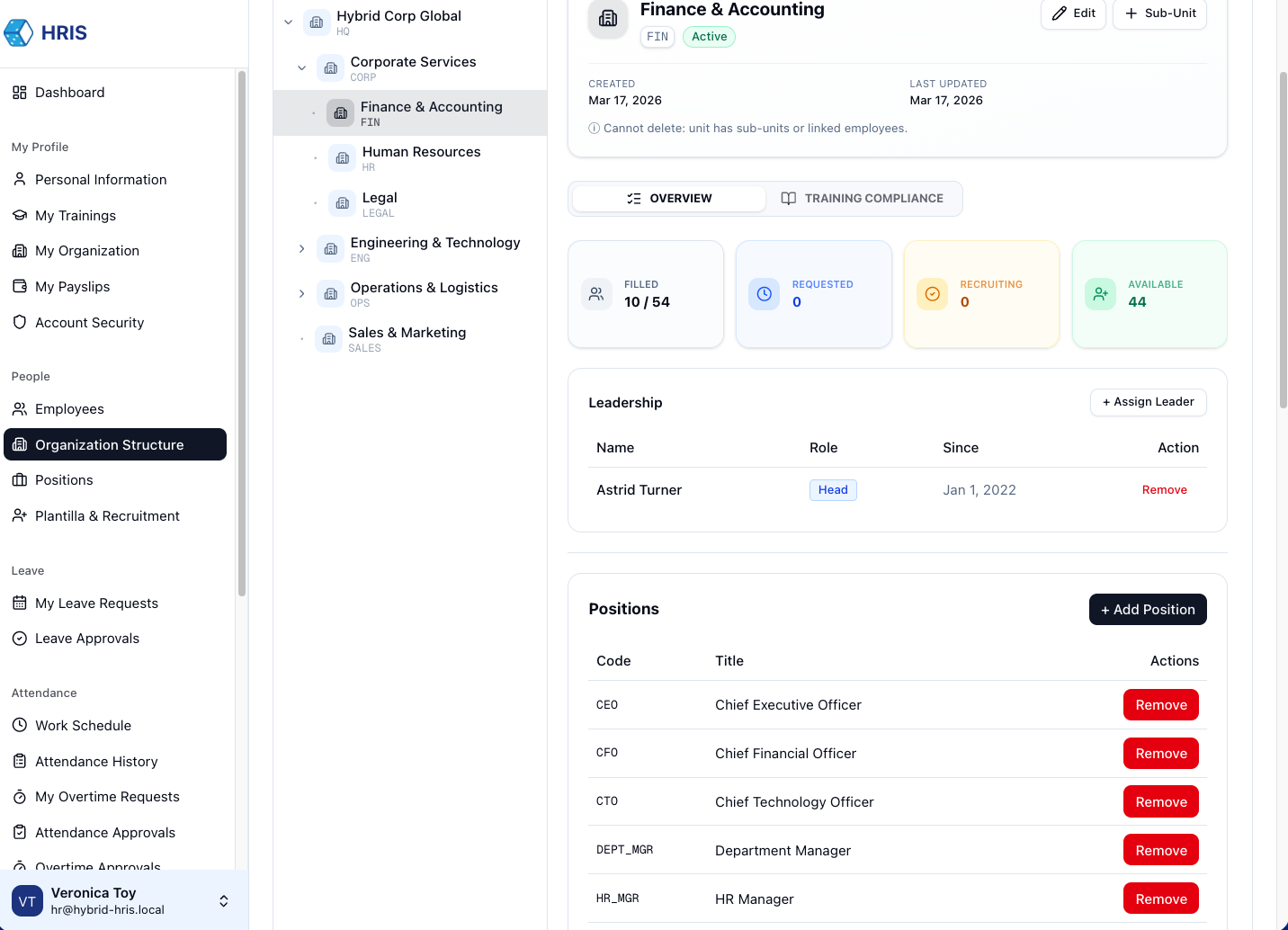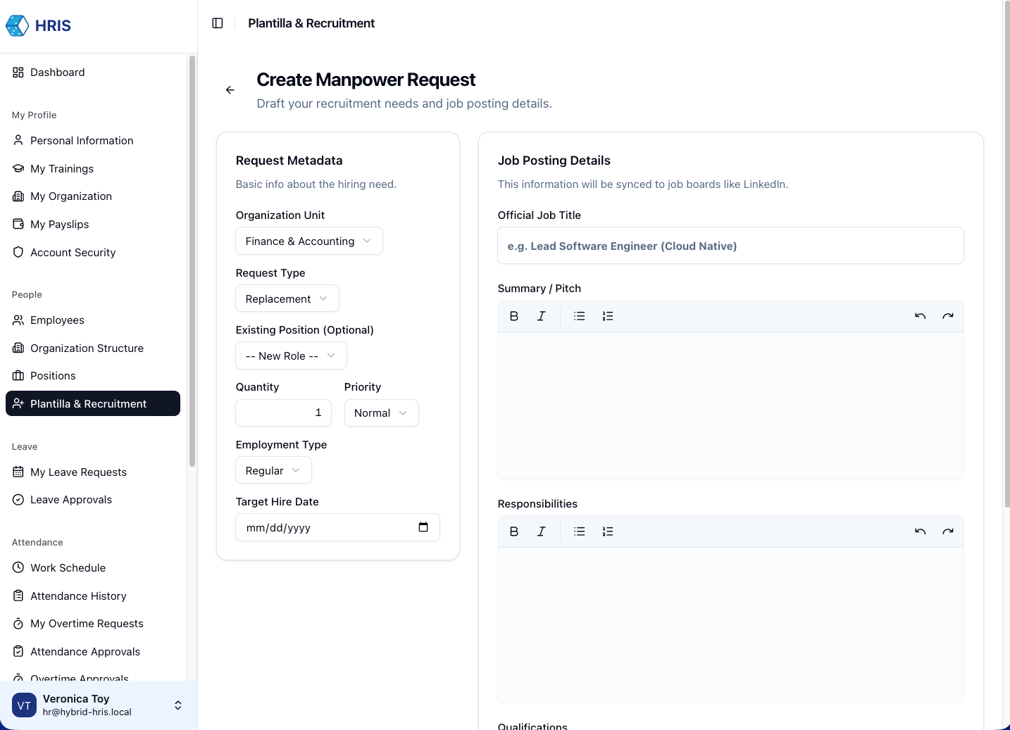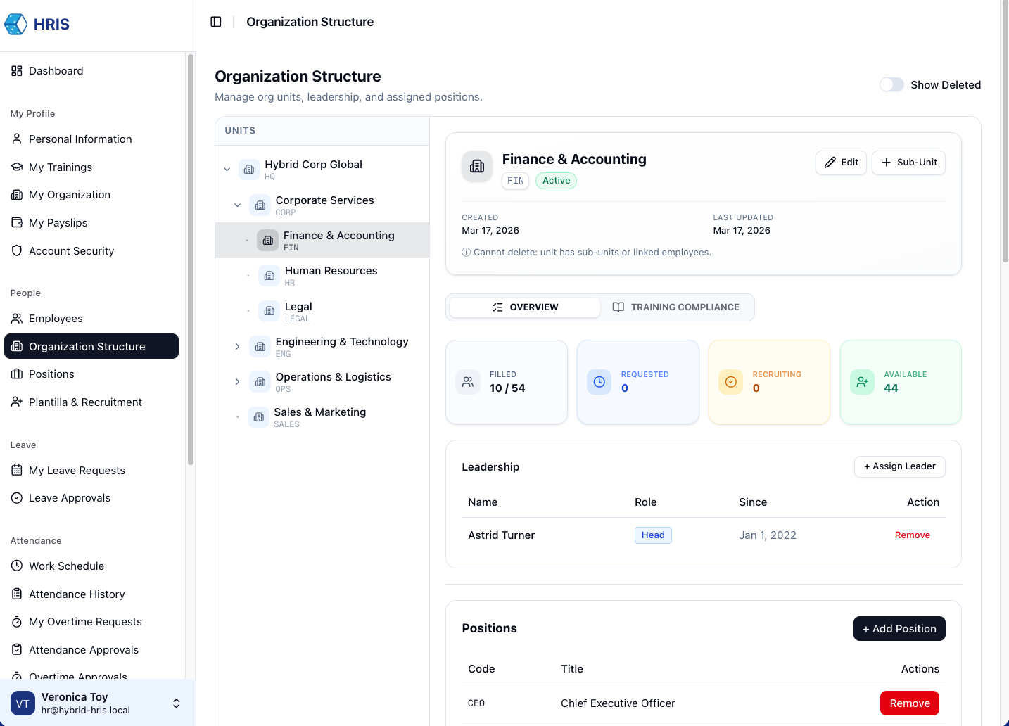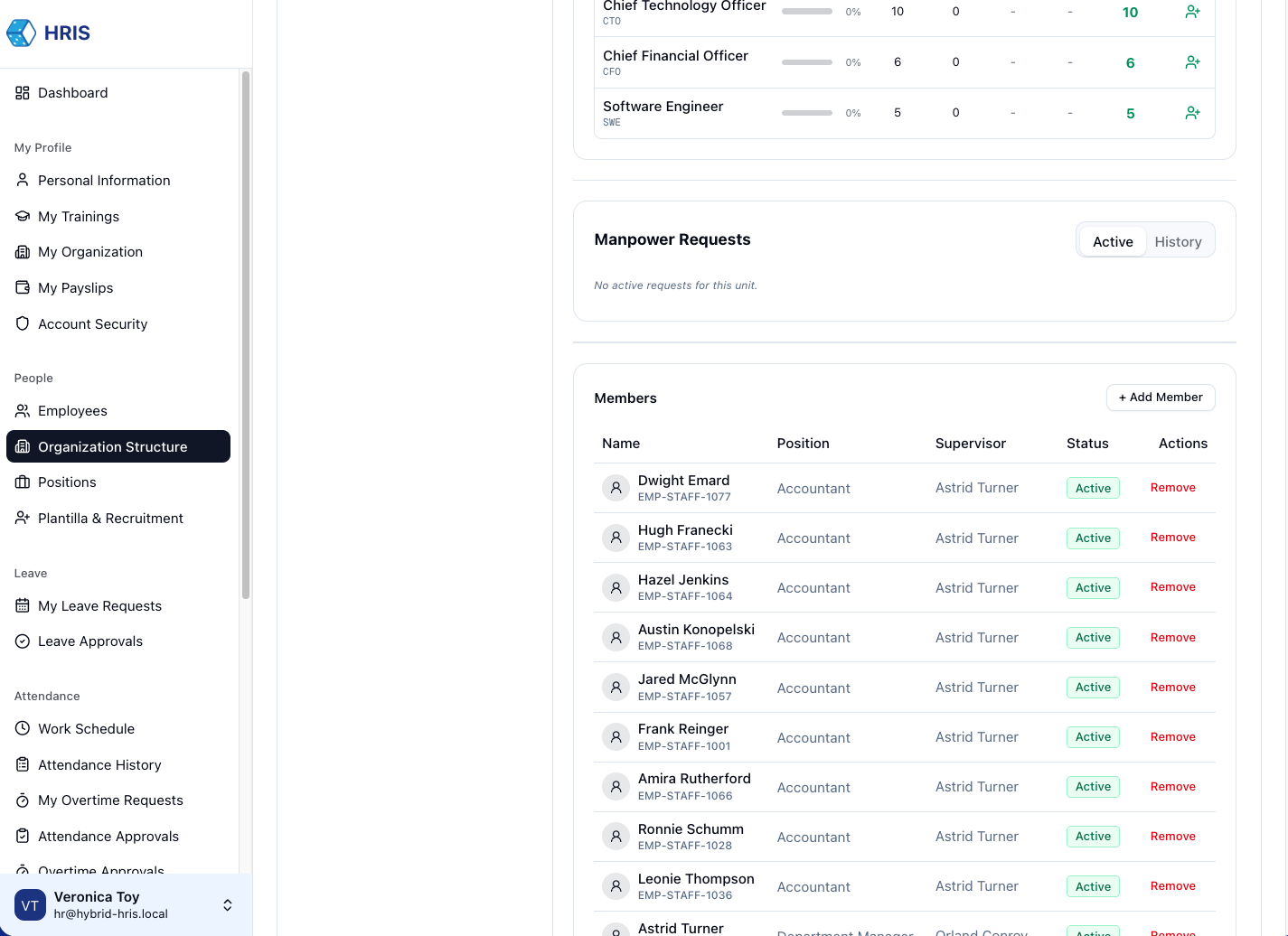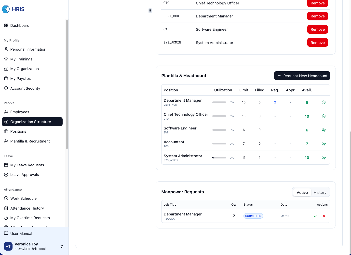 Model your company's hierarchy, manage personnel assignments, and control headcount via the integrated Plantilla and Manpower Request systems.