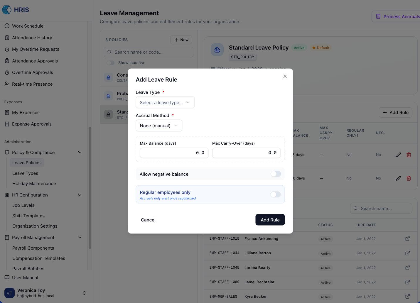 Define the "Rules of Engagement" for your organization. From accrual logic to temporal constraints, the policy engine ensures compliance.